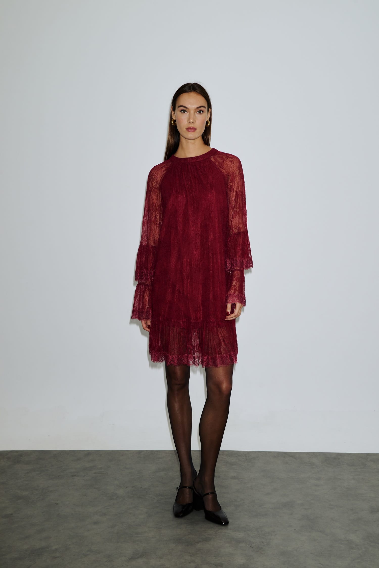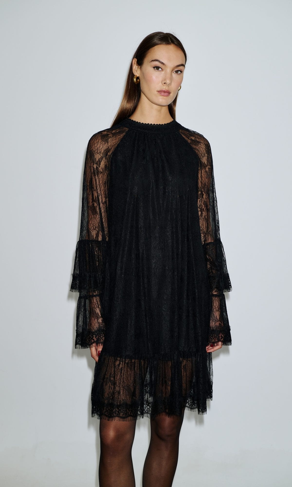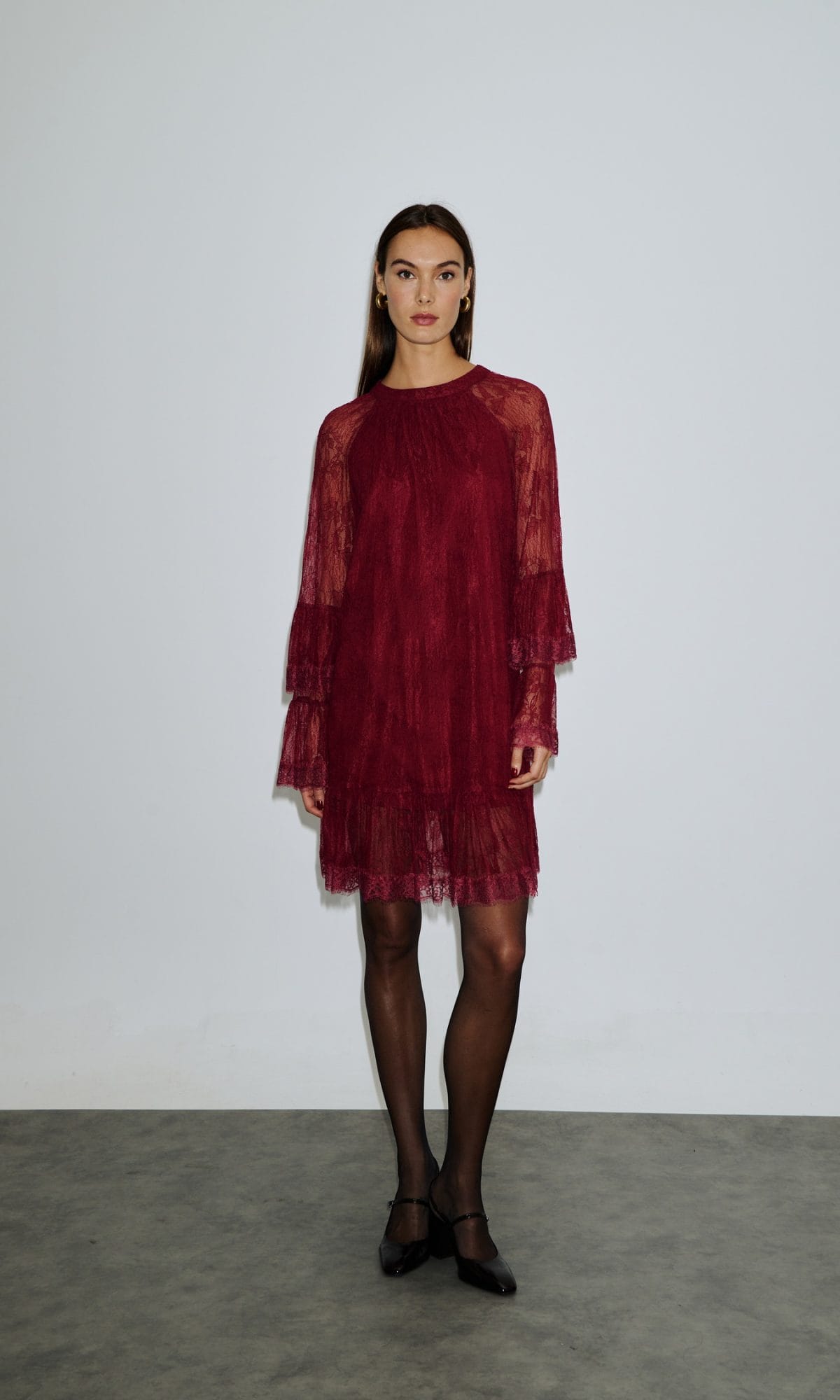Δαντελένιο φόρεμα βολάν: styling ιδέες