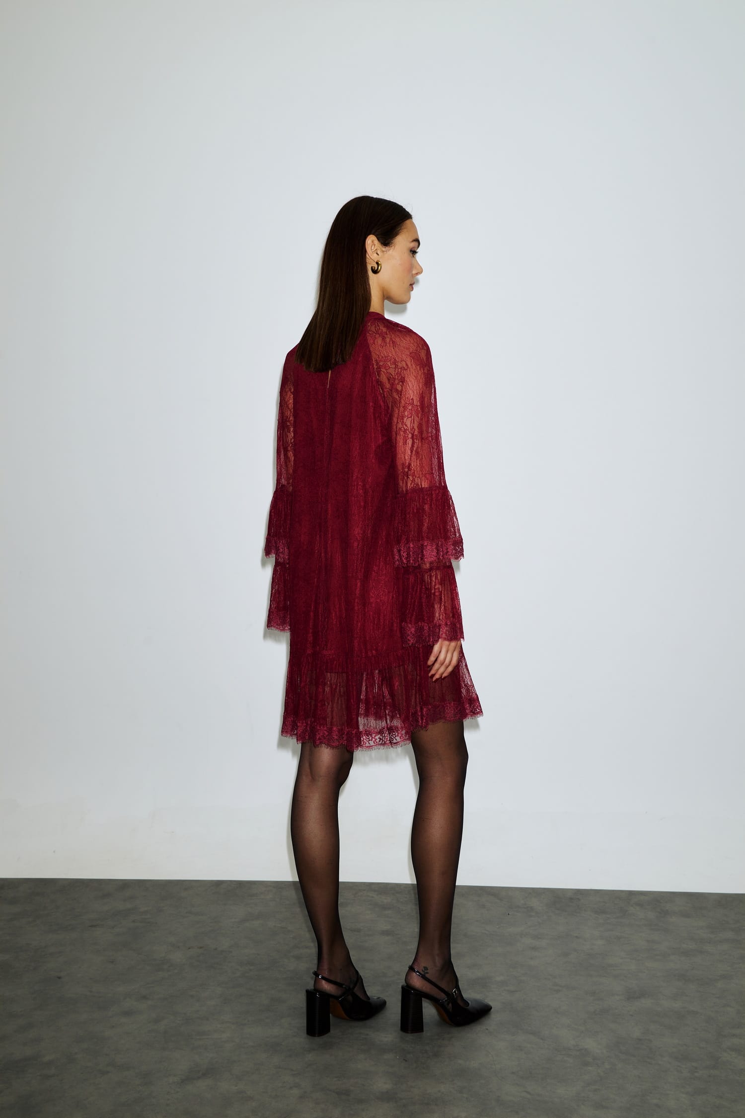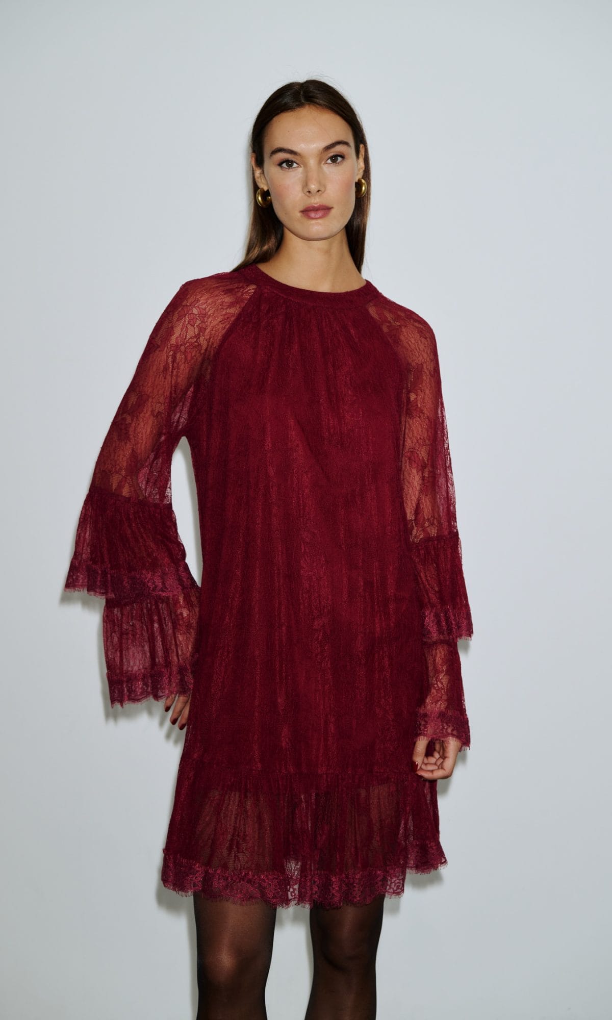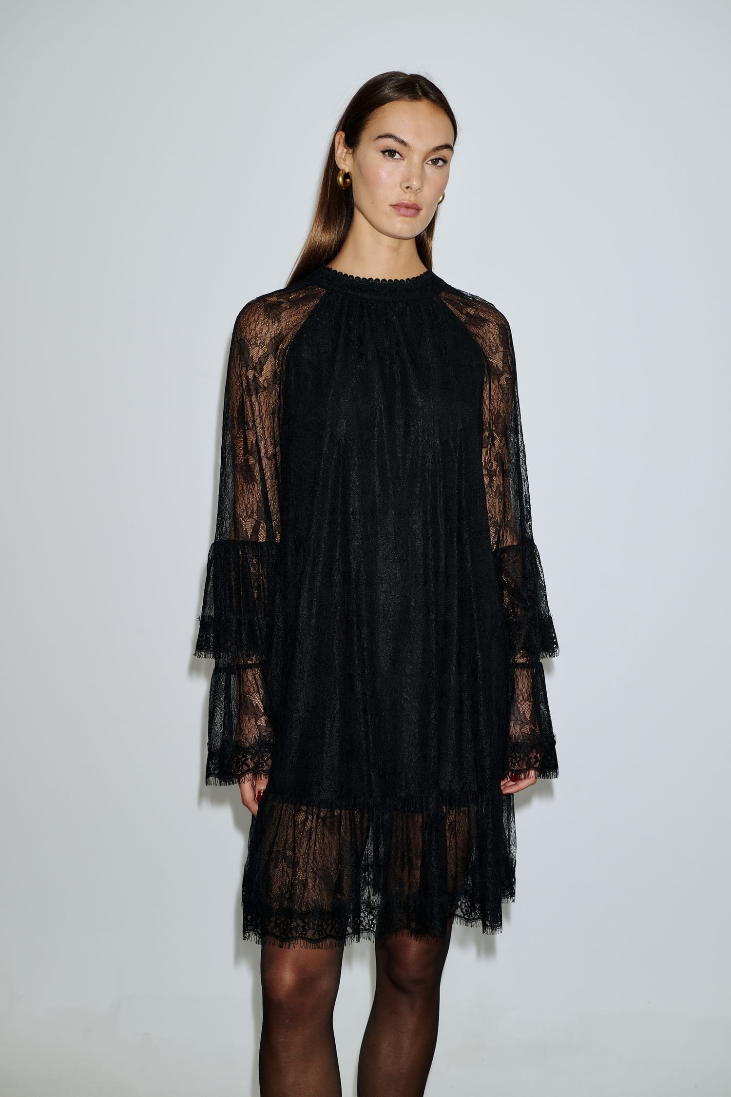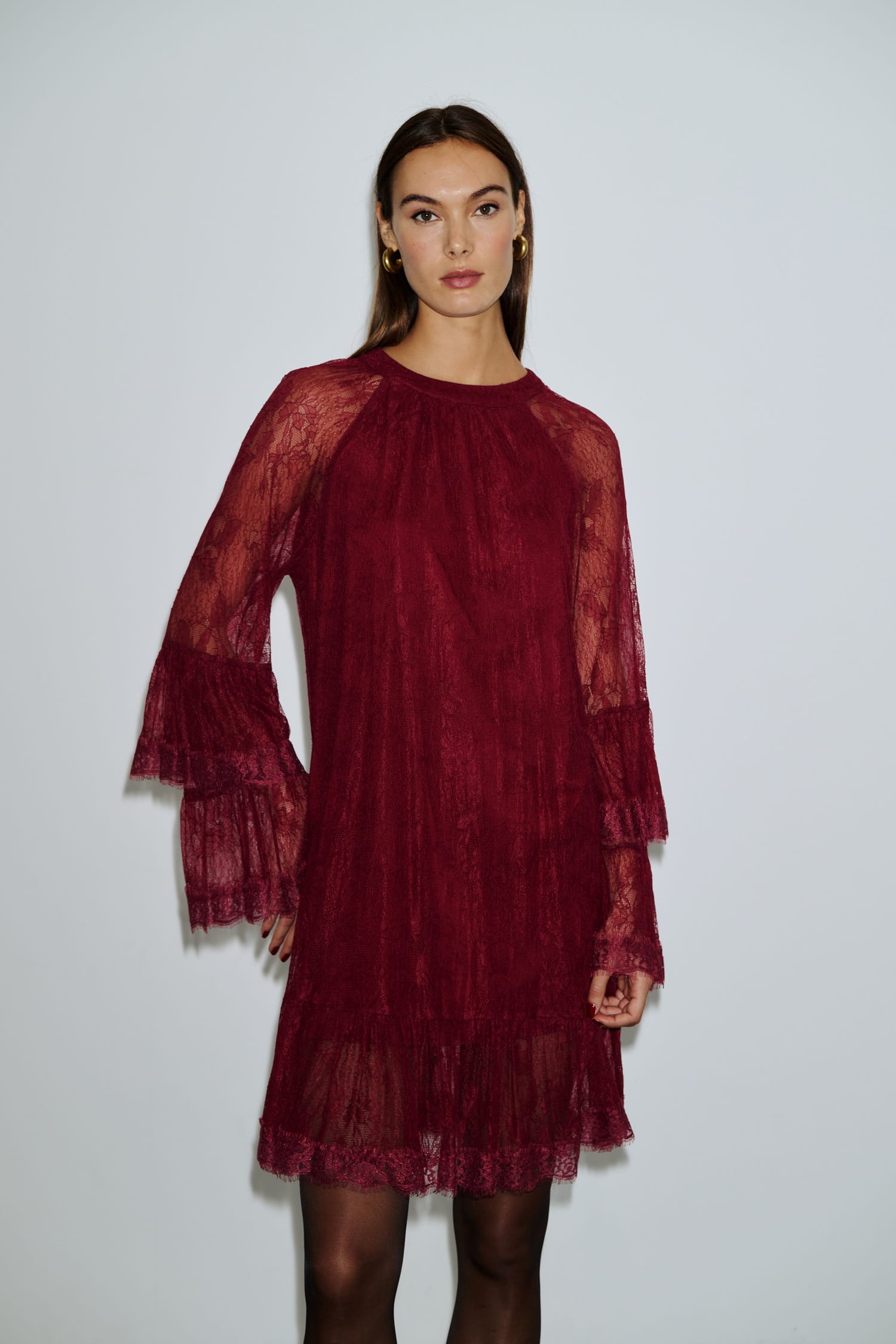 Δαντελένιο φόρεμα βολάν: styling ιδέες