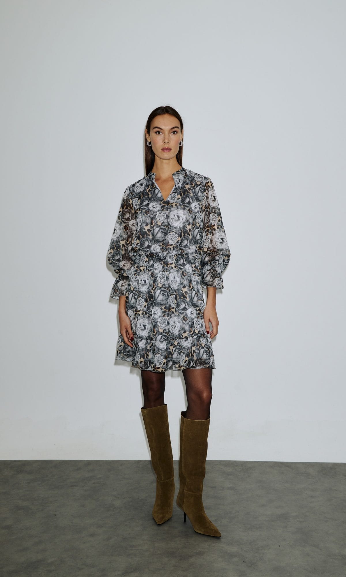 Τα βολάν στο τελείωμα και στα μανίκια προσθέτουν ρομαντική πινελιά και αναδεικνύουν τη θηλυκή πλευρά σου. Η κοντή γραμμή κάνει το φόρεμα εμπριμέ κοντό ιδανικό για καθημερινές, απογευματινές ή πιο επίσημες εμφανίσεις.