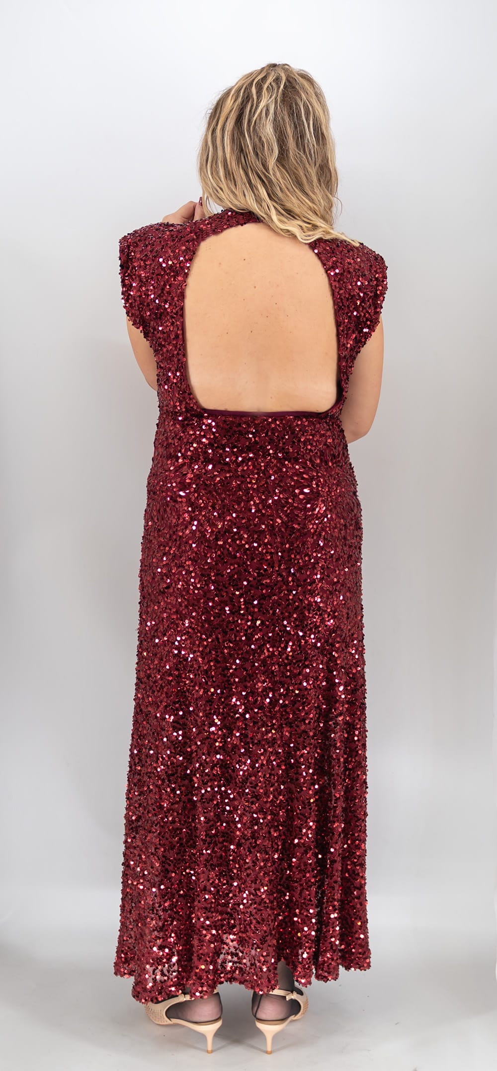 Για πιο κομψή γραμμή, κράτα τα μαλλιά πιασμένα ή σε sleek styling, ώστε να φαίνεται η ανοιχτή πλάτη. Έπειτα, διάλεξε nude ή μαύρο παπούτσι, ώστε να μην “σπάσει” η λάμψη. Ωστόσο, αν θες πιο τολμηρό αποτέλεσμα, πρόσθεσε μεταλλικές λεπτομέρειες και κράτα την υπόλοιπη εικόνα λιτή. Παράλληλα, βάλε προτεραιότητα στην ισορροπία: η παγιέτα τραβά ήδη τα βλέμματα, άρα μικρά, καθαρά αξεσουάρ δουλεύουν καλύτερα.