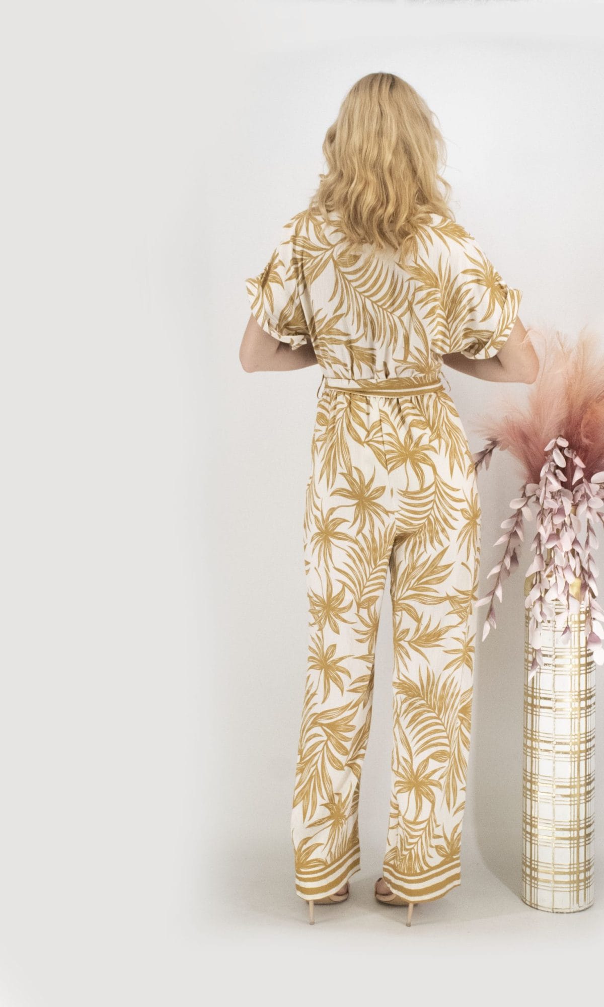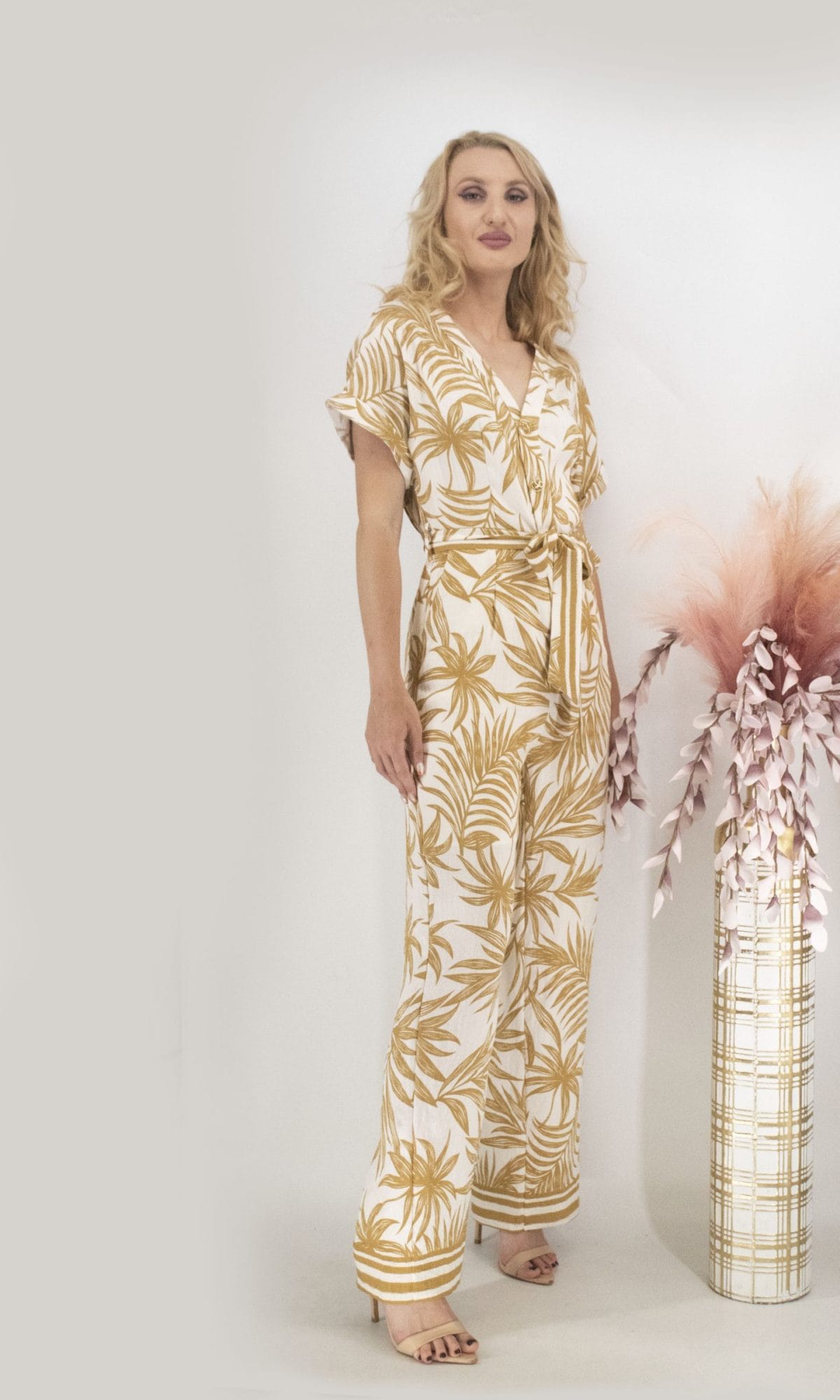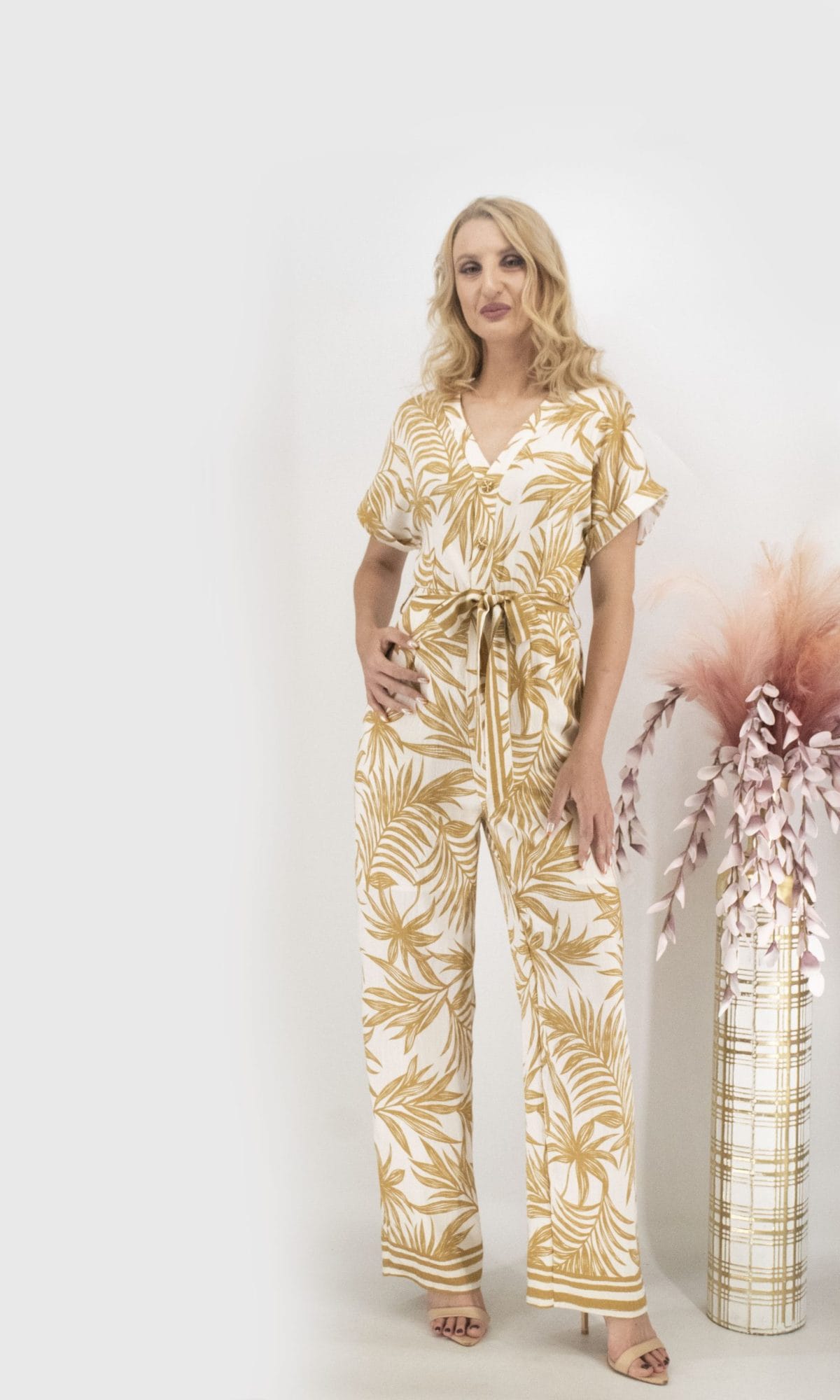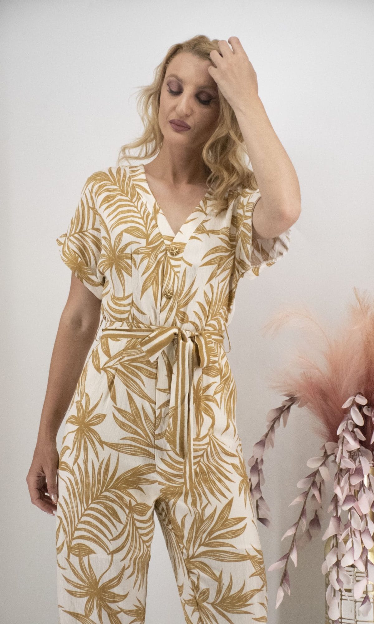 Η ολόσωμη φόρμα με φοίνικες της Ds Boutique χαρίζει τροπική διάθεση και εντυπωσιακό στυλ. Το μοτίβο με φοίνικες τραβάει τα βλέμματα, ενώ η αέρινη γραμμή προσφέρει άνεση και θηλυκό χαρακτήρα. Το ύφασμα είναι ελαφρύ και δροσίζει το σώμα, κάνοντάς τη ιδανική για τις ζεστές ημέρες του καλοκαιριού.