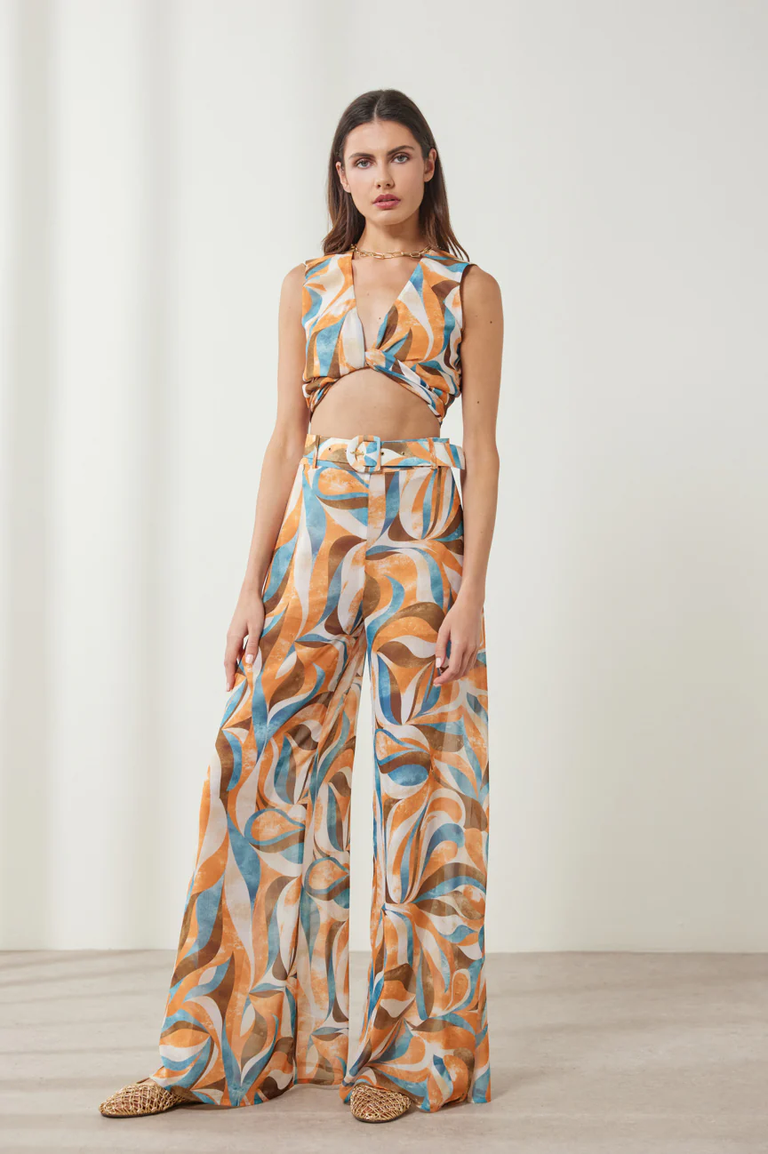 Η παντελόνα εμπριμέ με ζώνη διαθέτει επενδυμένο σορτς από μέσα, ώστε να προσφέρει άνεση και ελευθερία στην κίνηση χωρίς διαφάνεια. Μπορείς να τη φορέσεις με απλό τοπ και σανδάλια για καθημερινές εμφανίσεις ή να τη συνδυάσεις με πουκάμισο και πέδιλα για πιο chic look. Έτσι δημιουργείς διαφορετικά outfits που ταιριάζουν σε κάθε περίσταση.