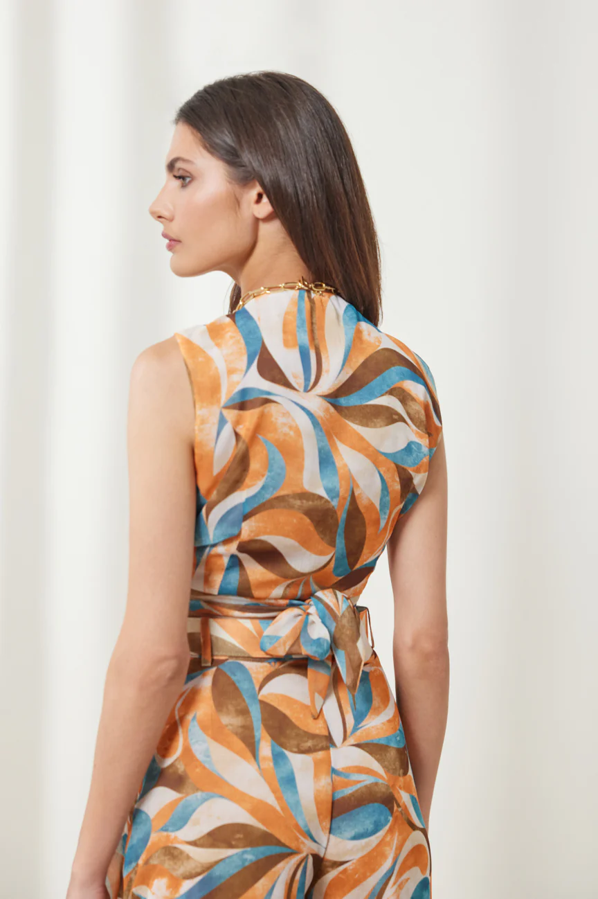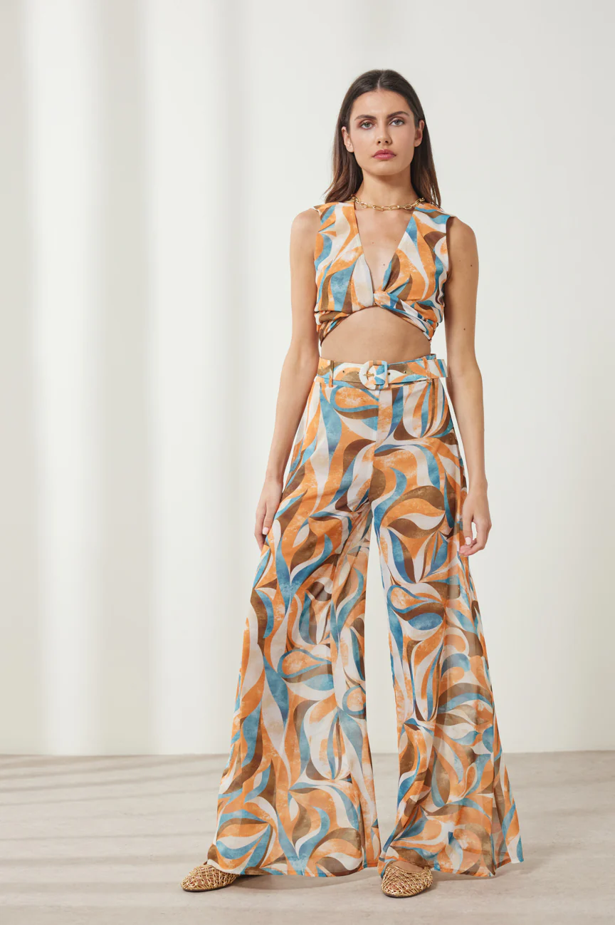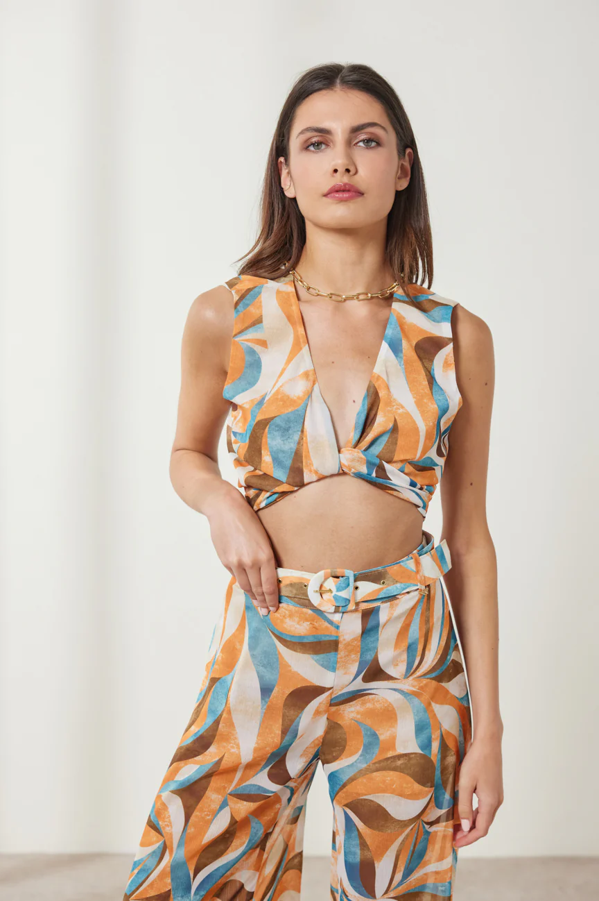 Μπορείς να συνδυάσεις το τοπ δετό εμπριμέ με σορτς ή τζιν για casual look, αλλά και με φούστα ή παντελόνα για πιο κομψό outfit. Έτσι δημιουργείς ευέλικτους συνδυασμούς που σε συνοδεύουν από το πρωί μέχρι το βράδυ. Η άνετη γραμμή του επιτρέπει εύκολη χρήση και κάνει το styling απλό και γρήγορο.